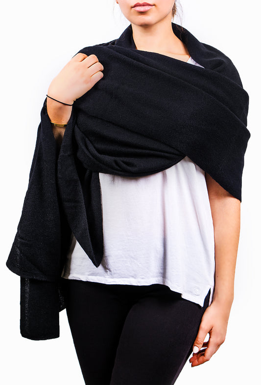 Jet Black Pure Cashmere Scarf